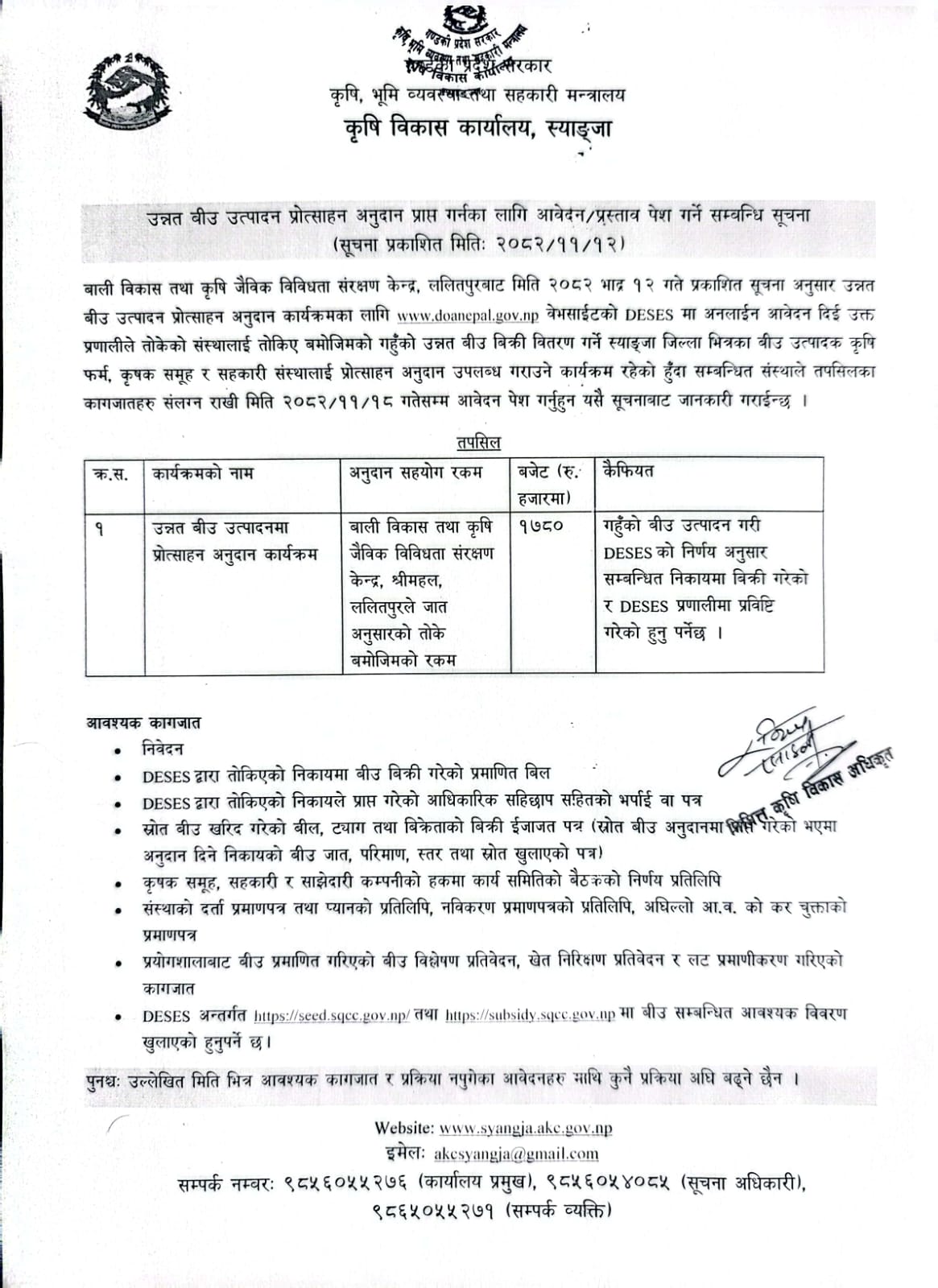 उन्नत बीउ उत्पादन प्रोत्साहन अनुदान प्राप्त गर्नका लागि आवेदन पेश गर्ने सम्बन्धी सूचना 2082-11-12 2082-11-18
